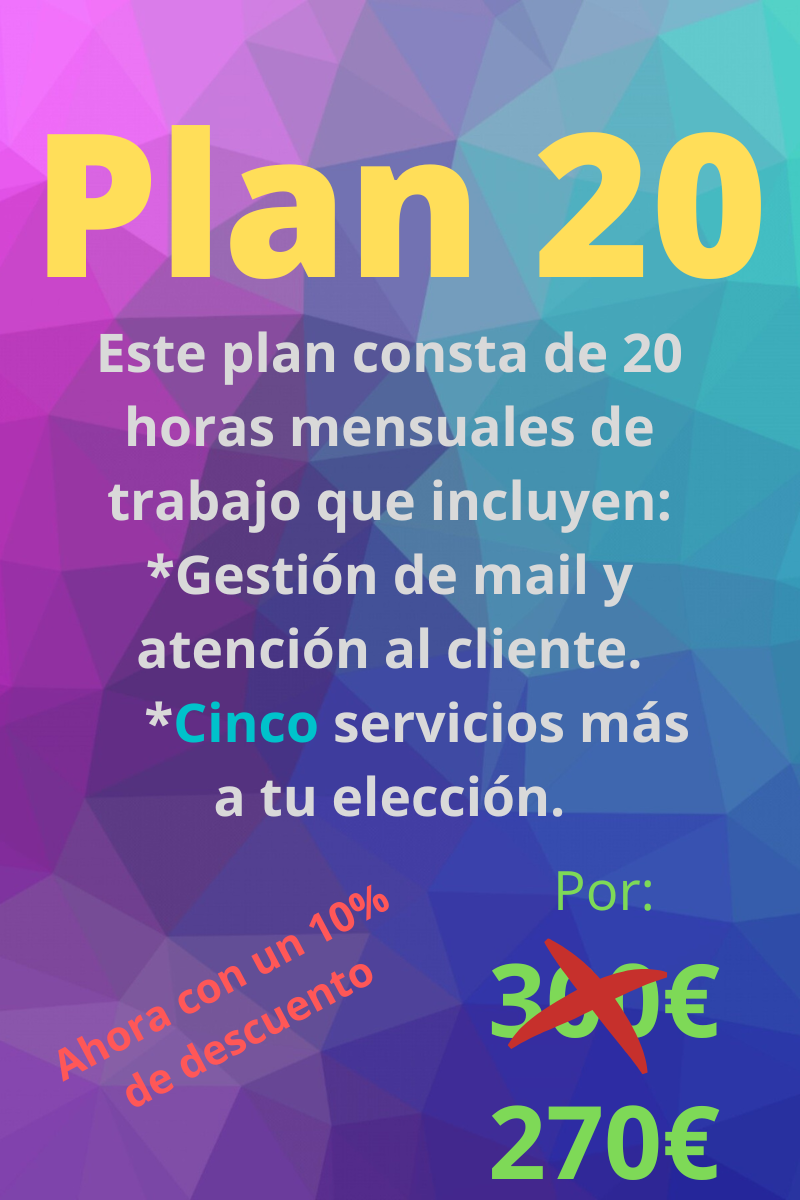 Por supuesto puedes hacer tu propio plan personalizado. También puedes probar gratis una tarea. Ponte en contacto conmigo y juntos estudiamos tus necesidades.